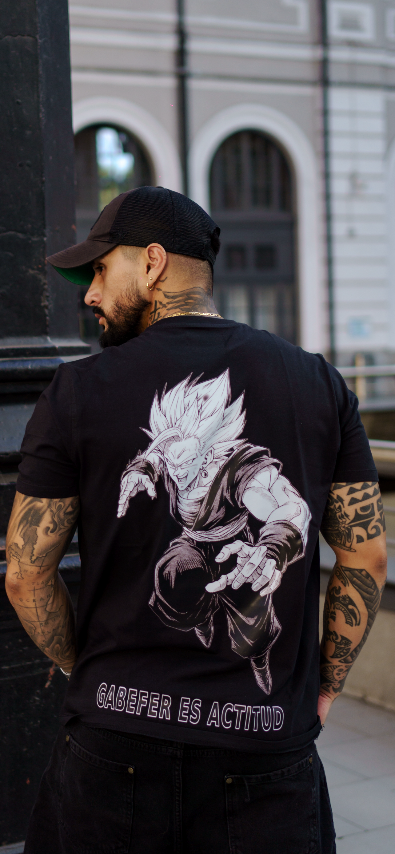 Camiseta exclusiva inspirada en Vegetto, la poderosa fusión de Goku y Vegeta en Dragon Ball Z.